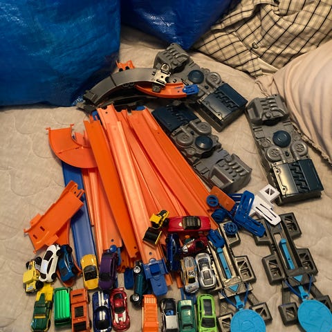 Kaksi pahvilaatikollista autoratoja. Kaikki sekaisin, myydään kerralla. Ei takeita siitä, että kaikki osat tallella. Seassa myös seinäradan osia. Nouto Tammistosta.