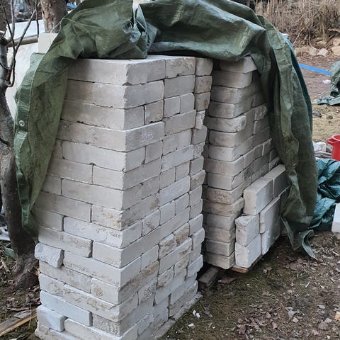 Kuvan mukaiset kattotiilet annetaan. Joukossa muutamia haljenneita. Saa hakea