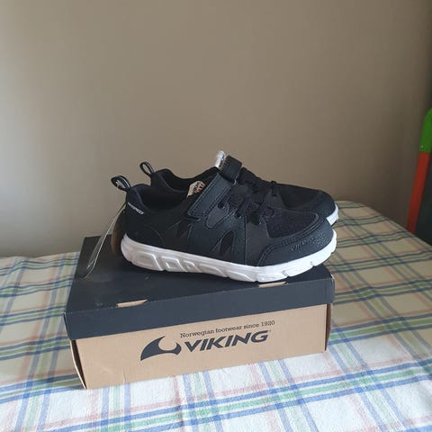 Myydään uudet Viking Engvik low lenkkarit / tennarit. Koko 35. Pohjallisen mitta kantakupista kärkeen noin 22,5cm. Väri musta.