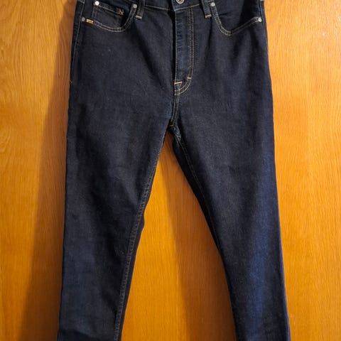 Tiger of Sweden Iggy -mallin naisten farkut. Sininen väri. Koko L, vyötärökoko W32 ja lahkeen pituus 34 (32/34). Materiaali pääosin puuvillaa jousto-ominaisuudella. Viisitaskuinen malli, vetoketju- ja nappikiinnitys. Sopivat arkikäyttöön ja yhdisteltäväksi erilaisten yläosien kanssa.