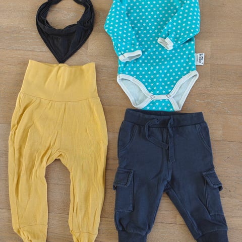 Ehjiä ja puhtaita vaatteita, joita käytetty koossa 56. Useampi body ja housut, muutama haalari. Halvalla pois muuton tieltä. Hajusteeton ja savuton koti. Myös nouto ok.