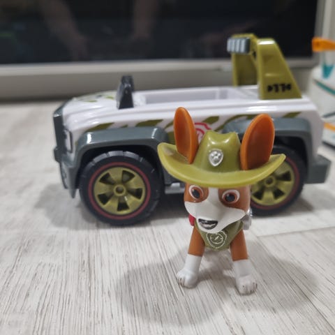Myydään Ryhmä Hau hahmoja. Kaksi Vainua, yksi Rolle, yksi Rekku, yksi Toma, yksi Riku ja Rikun auto ja yksi Sampaa.