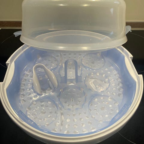 Mikroon tarkoitettu tuttipullosterilointilaite. Sopii tuttipullojen ja tuttien hygieniseen puhdistukseen mikrossa veden ja höyryn avulla. Soveltuu useimmille vakiokokoisille tuttipulloille.