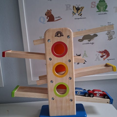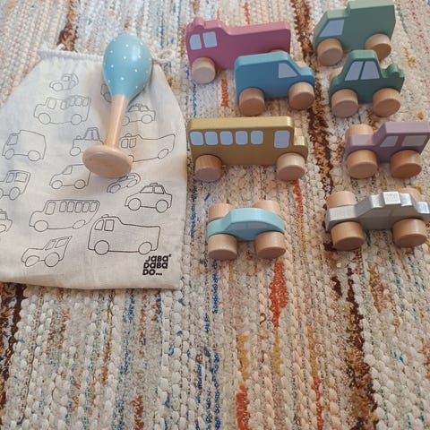 Myydään puinen auto, joka sopii vauvasta taaperolle. Auto muistuttaa perhosta ja menee myös "lyttyyn", joten mukava hypistelylelu.
