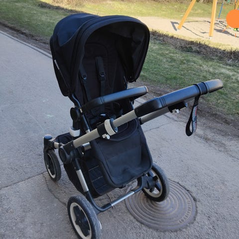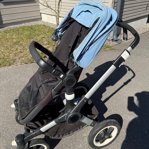 Bugaboo Buffalo yhdistelmärattaat, joissa tummansininen istuinosa ja kuomu sekä musta runko. Istuinosassa kulumaa jalkojen kohdalla. Käytetty aina istumasuojan kanssa. Rattaissa etupyörät kääntyvä (ja saa myös lukittua lumisella kelillä) ja takana suuremmat pyörät. Istuimessa on turvavyöt ja irrotettava turvakaari. Alhaalla on tavarakori pienten kantamusten kuljettamiseen. Työntöaisa on säädettävä. Sopii lapsen kuljettamiseen arjessa ja ulkoilussa.
