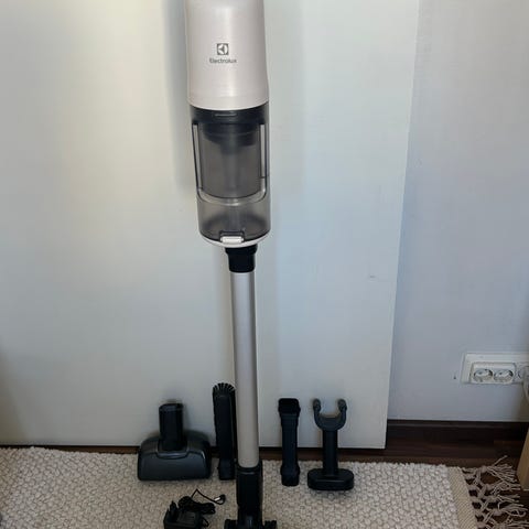 Electrolux varsi-imuri. Johdoton varsi-imuri, jossa on säiliö liikkuu, jotta pääsee sängynalle tms. Mukana tulee lataustelakka ja useita lisäsuulakkeita erilaisten pintojen ja ahtaiden paikkojen imurointiin.