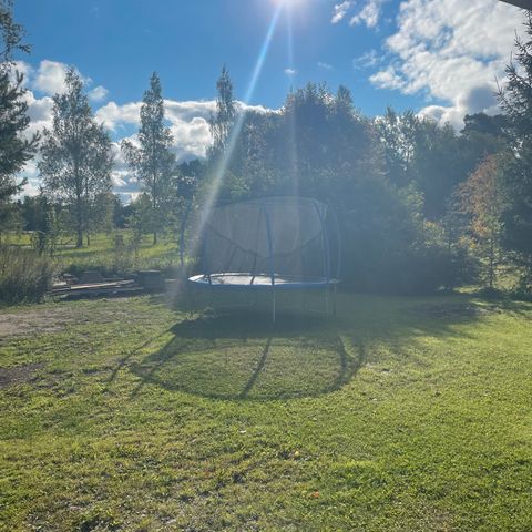 2020 ostettu, talvet ollut ulkona peitettynä, ilman verkkoa ja reunapehmustetta. Nyt osittain purettuna,loppu purkaminen jää ostajalle. Likaa ja käytön jälkeä jonkin verran. Suurin osa lähtee varmaan pesemällä.