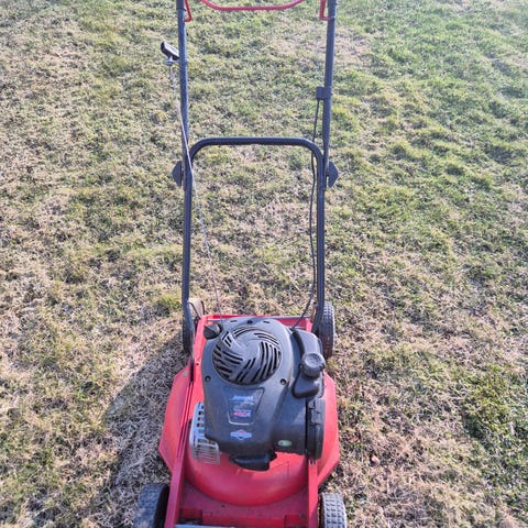 Briggs stratton quantum moottorilla varustettu huollettu leikkuri. Vaihdettu öljyt, ilmansuodatin, sytytystulppa, polttoaineletku ja kaasutin puhdistettu.
