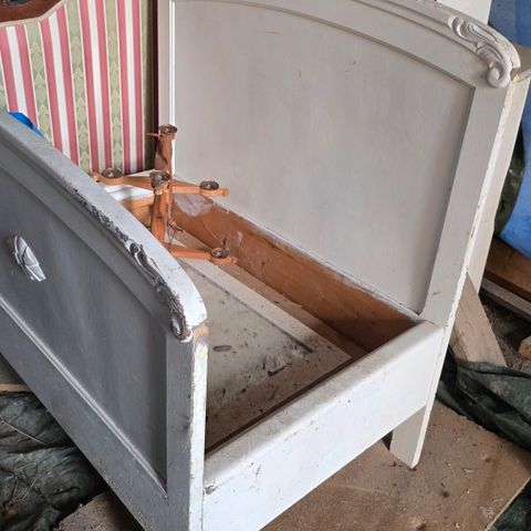 Vanha päästävedettävä sänky, kulumajälkiä löytyy.