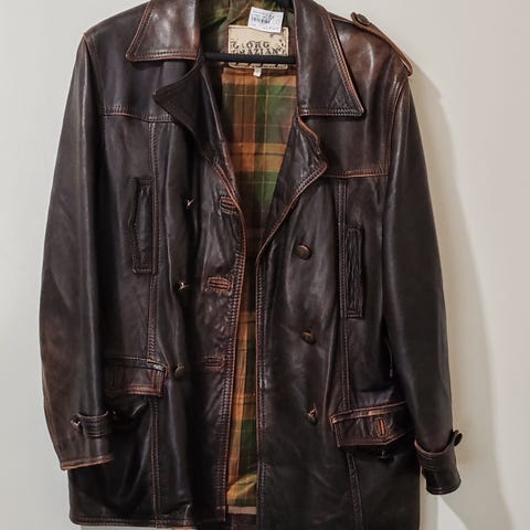 Suomalainen vintage ruskea nahkatakki, pusakkamallinen, L-kokoa mutta menee monen kokoiselle. Itselle M-kokoisena takki on oversize-mallia. Kevyet olkatoppaukset.