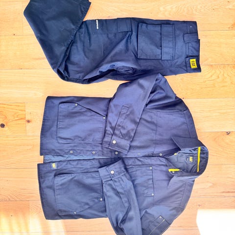 Ehjät, ei kulumia, hyvin vähän käytetyt. Housujen pituus 112 cm. Vyötärönympärys 82 cm. 65 % polyesteriä. 35 % puuvillaa. Nouto tai lähetys + -kulut.