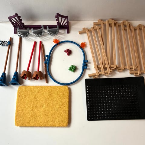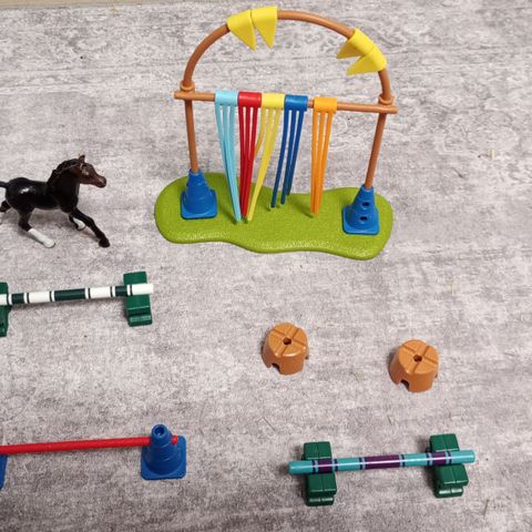 Kuusi kappaletta Schleich estettä, hinta kaikille yhteensä. Lisäksi pari koristepuuta. Yhdestä puomista tarra repsottaa hiukan toiselta puolelta, muuten en huomannut erityisiä moitteita.