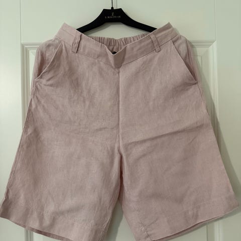 Nanso shortsit naisille, koko 40. Materiaalina pellava, väri kaunis vaaleanpunainen. Sivutaskut, takana joustava kuminauhavyötärö. Sopivat arkeen ja vapaa-aikaan lämpimään säähän.