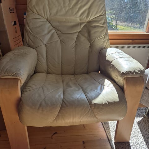 Annetaan pois kahden hengen istuttava nahkasohva.
