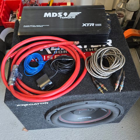 2x12 tuumaista Mds Predator ps12 500d4 subbaria ja Bilteman 31-220 1200w vahvistin refleksikotelossa. Kotelossa kutosen putki ja laskennallinen viri taisi olla noin 40hz (vähän korkea mutta hyvin tulee matalaakin). Kotelo verhoiltu mustalla ja ulkomitat 41x40x80cm, tilavuus noin 90 litraa. Subien kytky nyt 1 ohmiin. Vahvistimen tietoja;
