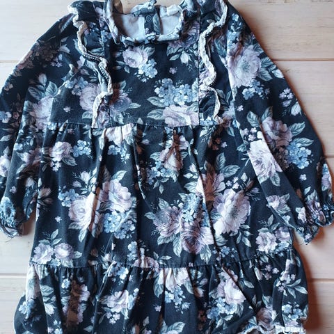 Newbie mekko tytöille, koko 86. Materiaalina puuvilla. Mekossa on kirjava, kukkakuvioinen kangas ja pitkät hihat. Helma ja hihansuut ovat kevyesti röyhelöidyt. Sopii arki- ja juhlakäyttöön lapselle, joka käyttää kokoa 86. Mukana myös rusettipanta samaa kuosia.