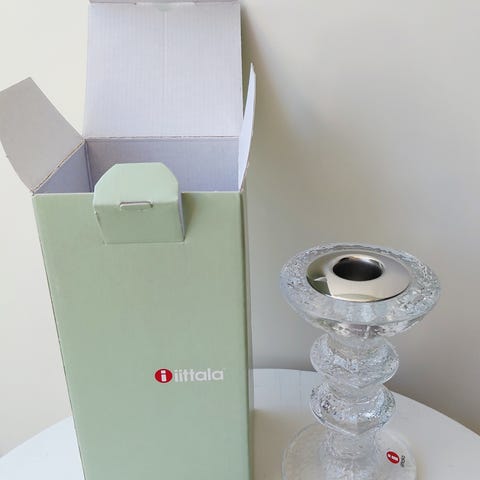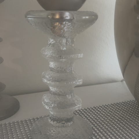 Myydään uusi, alkuperäispakkauksessa säilytetty Iittalan kirkas Festivo kynttilänjalka 150 mm. Kynttilänjalassa on irrotettava metallinen sisus kruunukynttilälle. Valmistettu Iittalan lasitehtaalla Suomessa, ovh uutena 100 eur. Tuote tarjolla myös muualla.