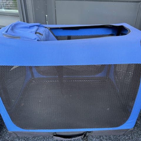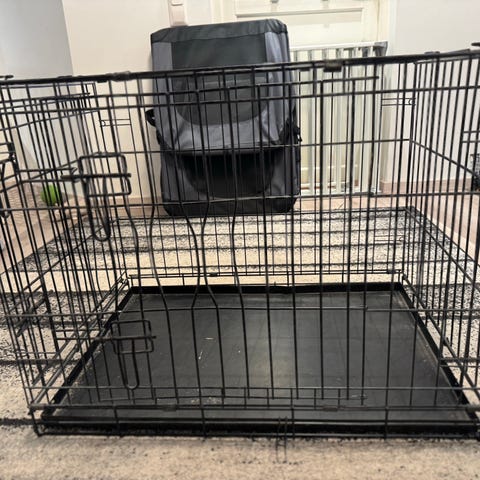 Myydään musta metallinen koiran kuljetushäkki. Kalteva etuosa, joten sopii hyvin esim. auton tavaratilaan. Pohjalla on muovinen, irrotettava alusta. Helppo puhdistaa. Soveltuu koiran/kissan kuljettamiseen ja mahdollisesti tilapäiseen majoittamiseen. Kerran käytetty, säilytetty autokatoksessa. Jossain kohdin pientä ruostetta?