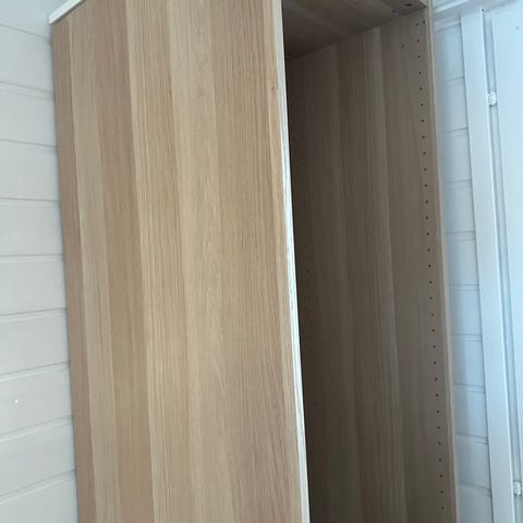 Valkoinen ikea pax runko, korkeus 236 cm syvyys 36 cm. Ei ovea, ei sisuksia. Edellinen omistaja ruuvannut huolella kiinni muihin kaappeihin, katso reiät. Taustalevy kiinnitetty väärinpäin.