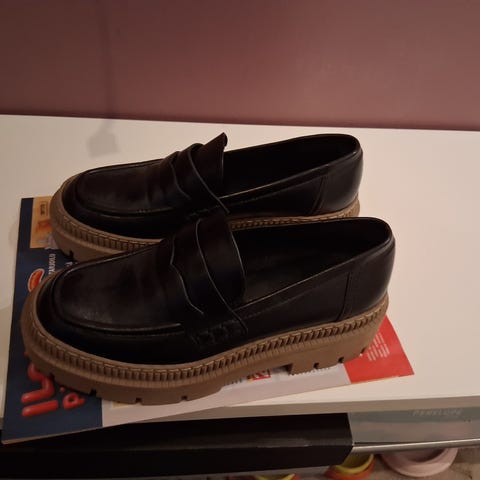 Jämäkkää nahkaa olevat Marc O'polo loaferit koossa 37. Käytetyt, mutta hyvä kunto. Olen kiinnittänyt kantaan lisäpehmusteen.