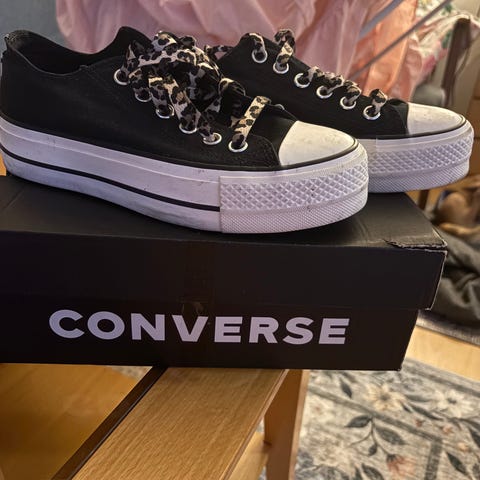 Converse All Star tennarit, koko 36,5. Matala malli nauhoituksella. Väri tummansininen, valkoinen kärki ja kumipohja. Päällinen kangasta, sisävuori vaalea tekstiili. Soveltuvat arkikäyttöön ja vapaa-aikaan.