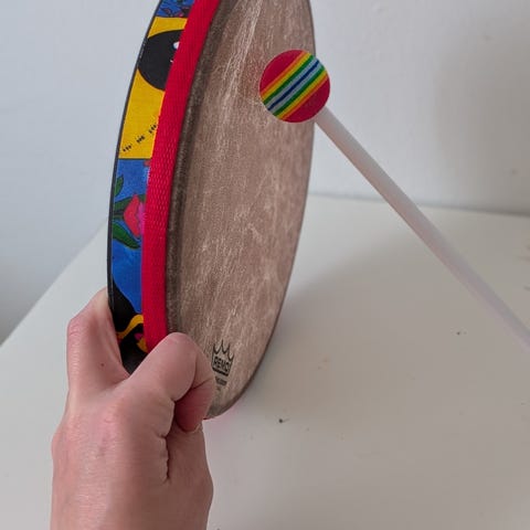 Tikkarin näköinen rumpu ja kapula, soitinliikkeestä ostettu.