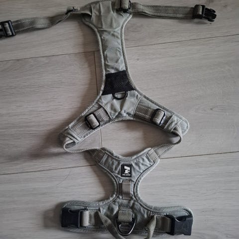 Feel active koiran valjaat, harmaa väri. Rinnanympärys 60–70 cm (20–28 tuumaa). Valjaissa on säädettävät hihnat, pikalukot ja pehmustetut osat. Sopivat koiralle, jonka rinnanympärys on noin 60–70 cm.