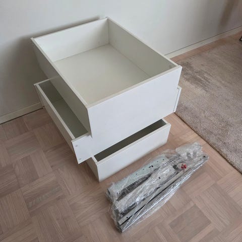 Myydään valkoinen metallinen laatikosto, jossa on kolme vetolaatikkoa. Laatikosto on hyvässä kunnossa ja siisti. Metallipinta on kestävä ja helppohoitoinen.
