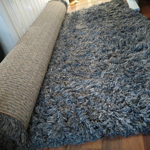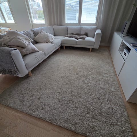 Annis nukkamatto, koko 160x230 cm. Matossa on pitkä nukka ja beigen/harmaan sävy. Sopii esimerkiksi olohuoneeseen tai makuuhuoneeseen pehmeäksi ja lämpimäksi lattiatekstiiliksi.