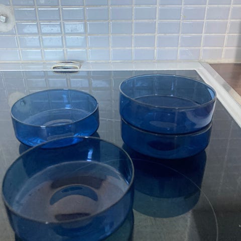 Kaksi vanhaa erilaista jälkiruokakulhoa. Hp5e yhteensä