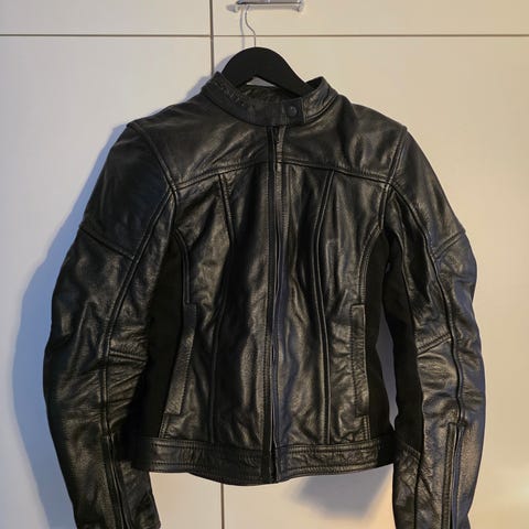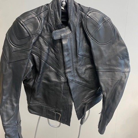 Nahkainen ajotakki. Irroittettavat olkapääsuojat, koko L. Käytetty vain pari kertaa.
