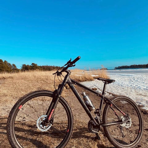 Varastossa säilytetty maastopyörä, joka muuten oikein toimiva menopeli. Talven aikana rengas tyhjentynyt (ilma ei pysy enää renkaassa) mutta renkaan tyhjyys otettu huomioon hinnassa.