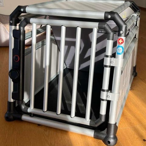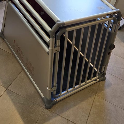Tarpeettomana koiran kuljetushäkki autoon. Leveys 80, korkeus 67 ja syvyys 65cm. Ovh. 180€