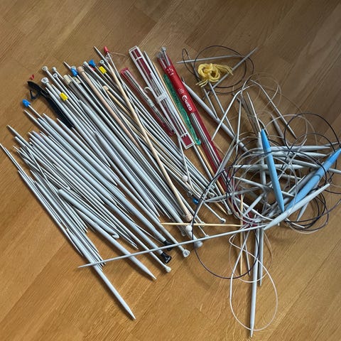 Neulepuikkosetti, jossa useita eri kokoisia puikkoja.