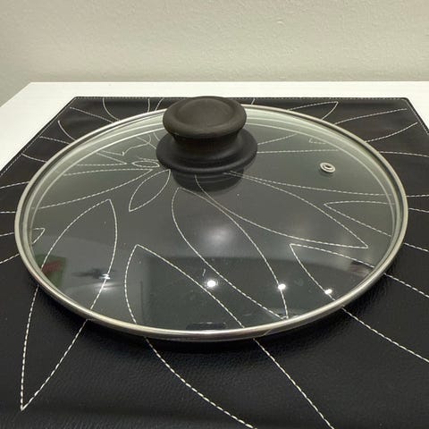 Lasinen kansi. Hyvä esim haudutukseen. Ei ilmareikää.