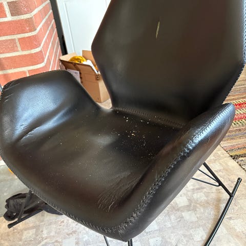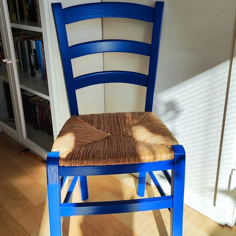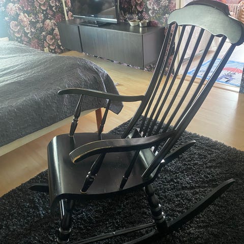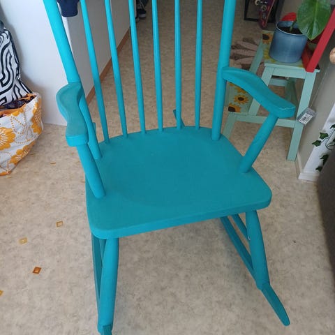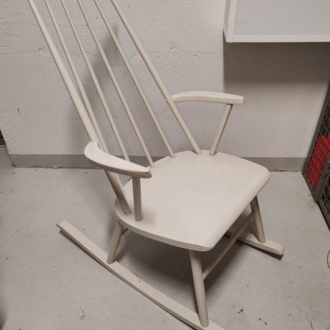 Myydään tilan tarpeen vuoksi valkoinen puukeinutuoli. Maalattu joskus valkoiseksi ja tuolissa pientä ajan patinaa. Tuoli on käyttökunnossa, mutta siinä on havaittavissa pientä nitinää ja natinaa. Löysien liitoksien liimauksella tuolista saa tukevan jos haluaa.