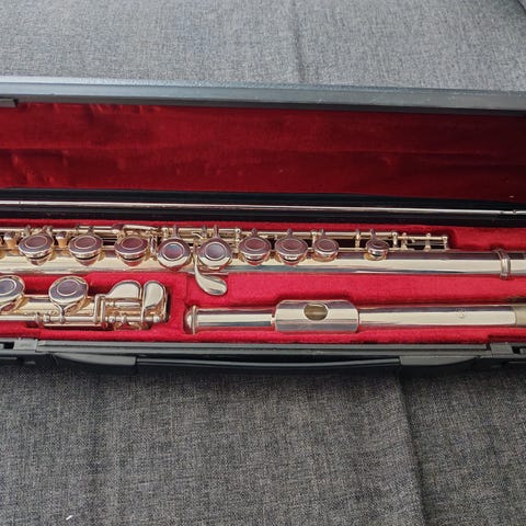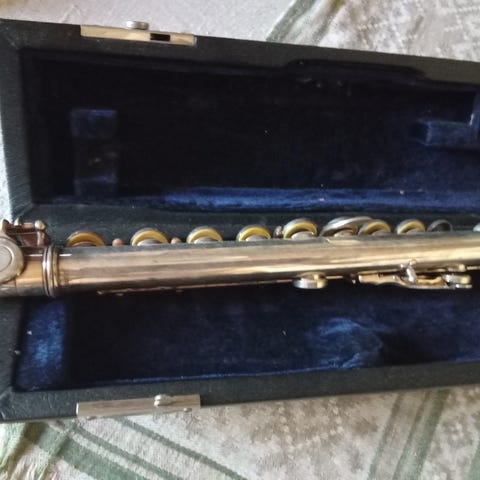 Erittäin kaunis ääninen hopeoitu huilu.