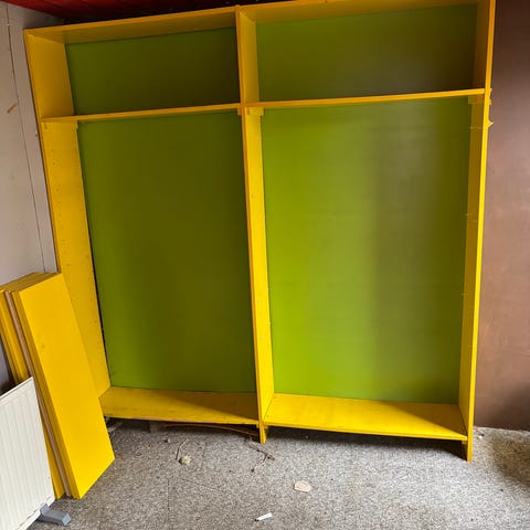 Valkoinen kirjahylly on kolmiosainen. Yhden osion mitat: Korkeus 170 cm, leveys 79,5 cm, syvyys 25 cm. Hyllykkö on siistissä kunnossa vaikka toki vuosikymmenten patinaa. Osat helposti irrotettavissa. Vain hylly myynnissä, ei esineet.