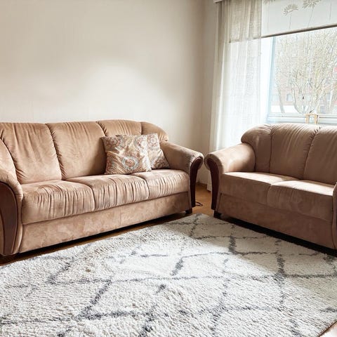 Hyväkuntoinen ja siisti sohvakalusto tupakoimattomasta taloudesta. Sohvan keskiosassa kulumisjälkiä, muuten tosi siisti. Vain nouto. Omakotitalon 1.kerroksesta ja autetaan kantamisessa.