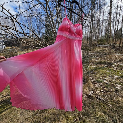 Kaunis hempeä rosa sävyinen mekko jossa kimalletta.Kokoa 44 kerran pidetty häissä.Postitus onnistuu.Käteismaksu nouto sovitusti kotoani,