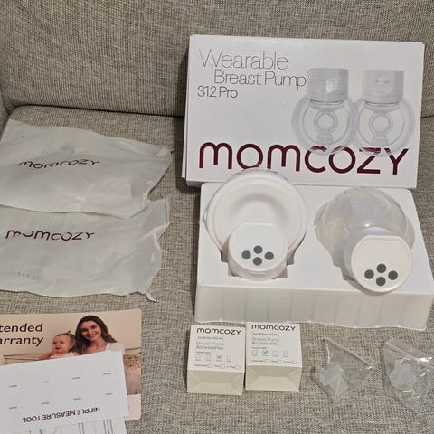 Momcozy S12 Pro rintapumppu -setti. Pakettiin kuuluu 2 moottoria, joten pumppaus onnistuu helposti molemmista rinnoista samaan aikaan.