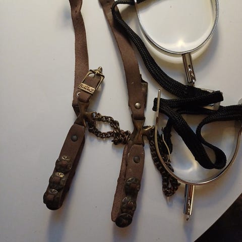 Nahkaa, hyväkuntoiset. Voidaan postittaa.