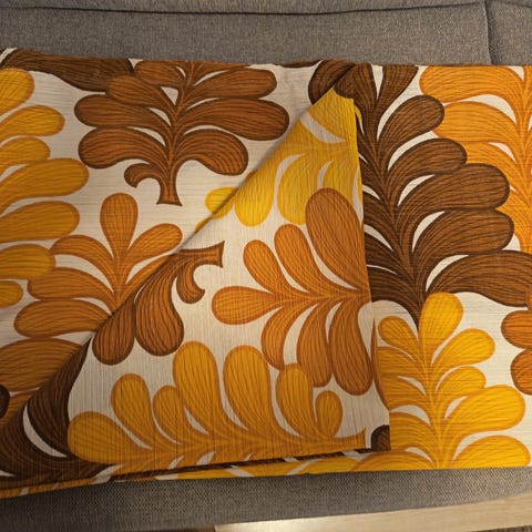 Verhot, vintage 70-luvulta 3 kpl, jossa läpikuultava valkoinen pohja ja ruskeasävyiset pyöreät kuviot. Sopii käytettäväksi verhoina tai sisustuskankaana esimerkiksi olohuoneessa tai makuuhuoneessa. Kankaassa on kevyt, valoa läpäisevä rakenne, joka pehmentää näkymää mutta päästää luonnonvalon sisään. Pituus 150cm ja leveys 120,5cm
