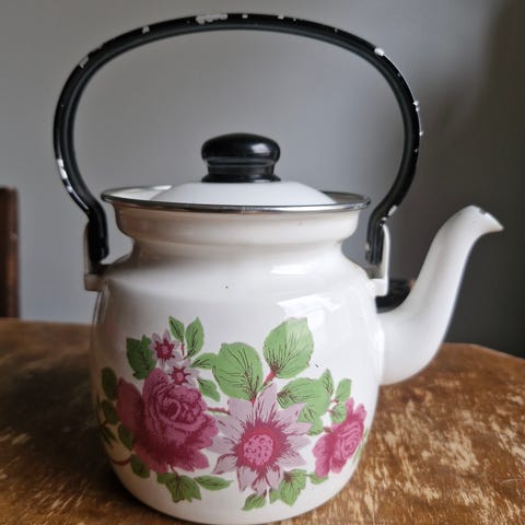 Harvinaisen hyväkuntoinen Finelin emalipintainen Onnimanni-kahvipannu. Vain pientä kulumaa kahvan reunoissa, voi halutessaan vaikka maalata.