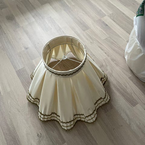 Vaalea kangasvarjostin pöytä- tai lattiavalaisimeen. Varjostin on muodoltaan pyöristetty ja aaltoilevareunainen. Materiaalina on vaalea kangas, jossa on hillitty reunuskoriste alareunassa. Sopii käytettäväksi sisätiloissa yleis- tai tunnelmavalaisimen varjostimena.