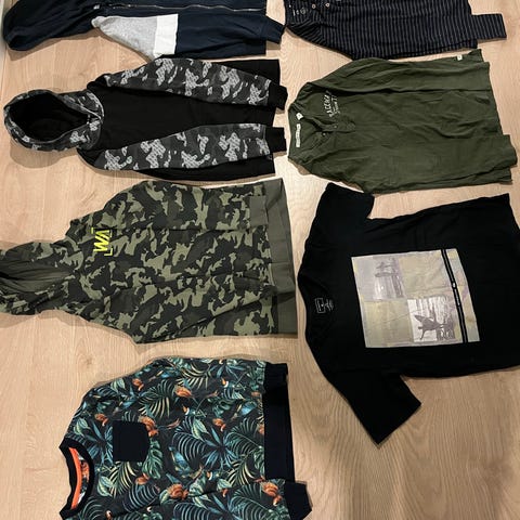 Lindex poikien t-paidat 2 kpl. Setissä useampi lyhythihainen t-paita eri väreissä ja kuoseissa, muun muassa oranssi paita rantakuvioinnilla sekä vihreä paita apinaprintillä. Monivärinen kokonaisuus sopii arkeen ja vapaa-aikaan. Puuvilla. Käytön jälkiä. Uimahousut tulee mukaan nr 12. Nämä numerot sopii kaikki samaan.