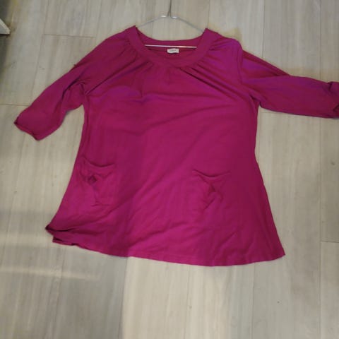 No Secret tunika naisille, koko 48. Violetti väri. Materiaali 100 % viskoosia. Edessä koristeellinen kirjailu ja 3/4-pituiset hihat. Väljä malli, jossa taskut sivuilla. Soveltuu arki- ja vapaa-ajan käyttöön. Ei käytetty kertaakaan. Kai-kai 62 cm pituus 72cm