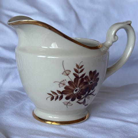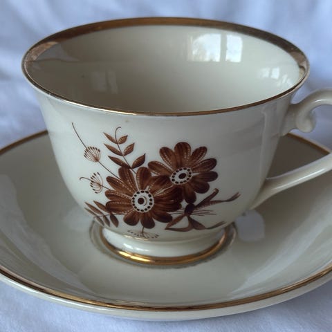 Myydään Arabian Finlandia kahvikannu. AX-malli, jossa ruskeita kukkia ja kultareunus. Suunnittelija Olga Osol. Korkeus 21 cm, halkaisija 12 cm. Nokan ja kahvan kohdalta 23 cm.
