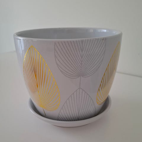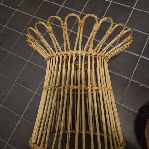 Punottu kori luonnonvärisestä materiaalista. Käytön jälkeä on ja pohja ei pidä vettä.