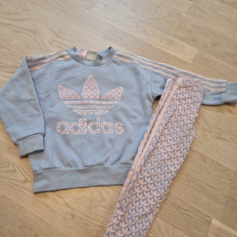 Adidas collegeasu tytöille, koko 104. Väri vaaleanpunainen. Paita löjes käyttämätön ja moitteeton. Housuissa pieni tahra edessä ja polvissa hyvin pientä haalistumaa.